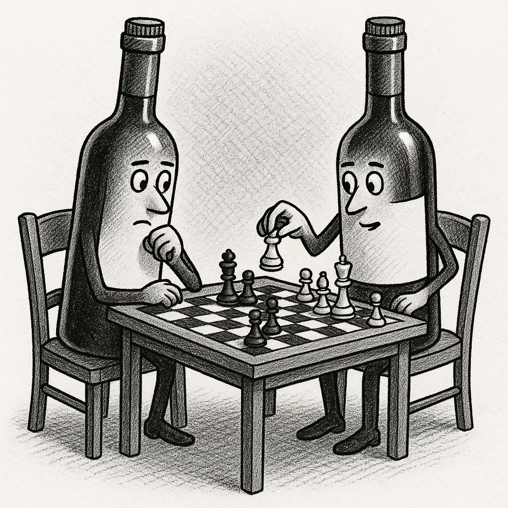 So how does all this talk about chess matter in the context of wine? Well, instead of pretending that a wine can be assigned an absolute, context free value, an Elo-based ranking system applied to wine would recognise that preferences emerge relationally. In other words, wine A is preferred to wine B at a specific tasting moment. When applied over time, the pattern of pairwise outcomes would shape a dynamic map of consumers palates. It sidesteps the impossible expectation that consumers (or indeed critics) can quantify their experience on an arbitrary scale and instead asks a far simpler, and much less cognitively taxing question, namely “Which of these two wines do you prefer right now?”. The mathematics of the Elo formula then transforms this intuitive choice into a continuously updating system reflecting both the strength of past favourites and the impact of new discoveries. Crucially, ranking wines in this manner makes the rating agnostic to style or convention, featuring no inherent reward for richness, oak, power, or sweetness, nor any penalty for delicacy or restraint.